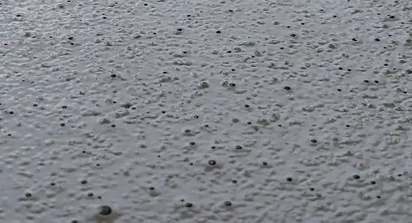 2. Balkongmaling med kvartssand (6) i 1. strøk med ett toppstrøk over: Dette ble ikke så bra i testen. Det ble endel luftbobler som gav groper i malingen. Gir god antiskli effekt og er noe letter å rengjøre enn om man strør sand i toppstrøket.