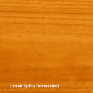 1301 Rødrev Tyrilin Terrasse er en varm og gyllen tone fra Tyrilin som er beregnet til terrassebeis. Denne fargen er laget med Tyrilin sin gule base som utgangspunkt, som er noe annerledes enn andre merker sine gule baser. Denne fargen er derfor kun tilgjengelig i Tyrilin Terrassebeis 3 liter. Terrassebeisen fra Tyrilin er en transparent, høykvalitets utendørs trebehandling som gir et eksklusivt utseende på treverket.