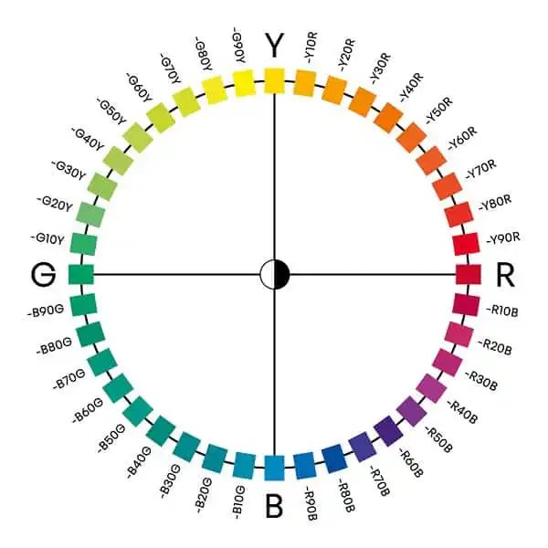 Ønsker du en mindre rød farge kan du f.eks velge Y50R som da vil ha 50% rødt i det gule (50% gul). Alle koder med tallet 50 i seg, kalles midtfarger, fordi de har like mye farge av begge. Midtfarger skiller opplevelesen av farge, så når tallet er høyere enn 50 oppleves fargen som siste bokstaven, mens når tallet er lavere enn 50 oppleves farge som første bokstaven.