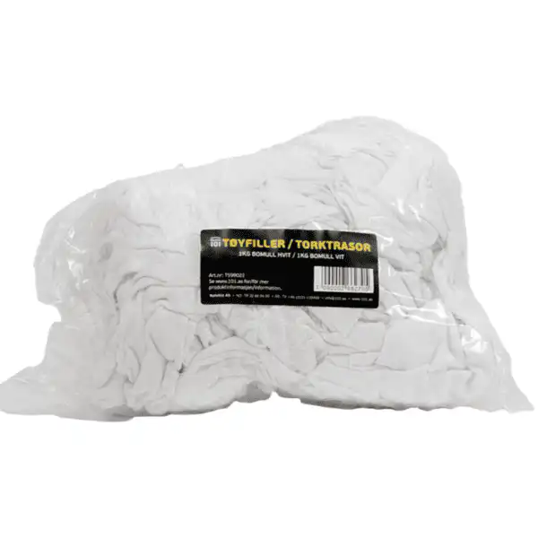 Hvite tøyfiller med ekstra god absorberings-evne i 100% bomull. Velegnet for generell rengjøring, verksteder, maskiner, malere og for rengjøring med løsemidler og kjemikalier.