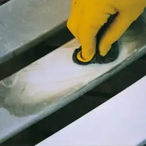 2. Påfør Alanor Plastvoks med klut i et tynt sjikt. La voksen tørke i ca 15 minutter. (NB! Tørketiden er avhengig av temperaturen).