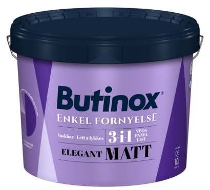 Butinox Elegant Matt er en allsidig og moderne 3-i-1 interiørmaling som gir en vakker, matt finish på både vegg, panel og list. Med høy slitestyrke og vaskbar overflate er den perfekt for hjem med høye krav til både utseende og funksjon.