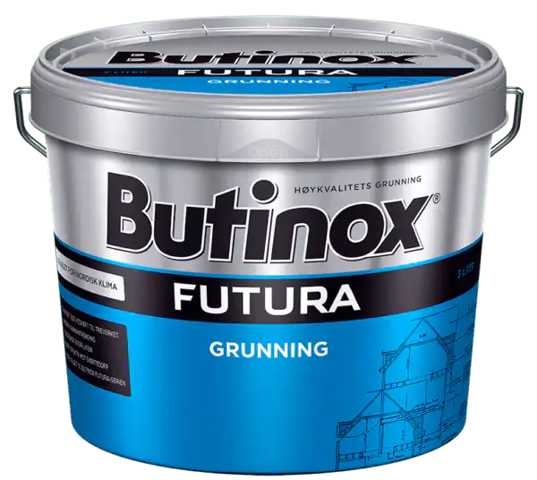 Butinox Futura Grunning er en pigmentert vanntynnbar oljegrunning for alt nytt og værslitt utvendig treverk. Grunningen kan benyttes på både høvlede og uhøvlede flater. Butinox Futura Grunning inneholder aktive midler mot svertesopp, samt effektive biocider mot råtesopp.