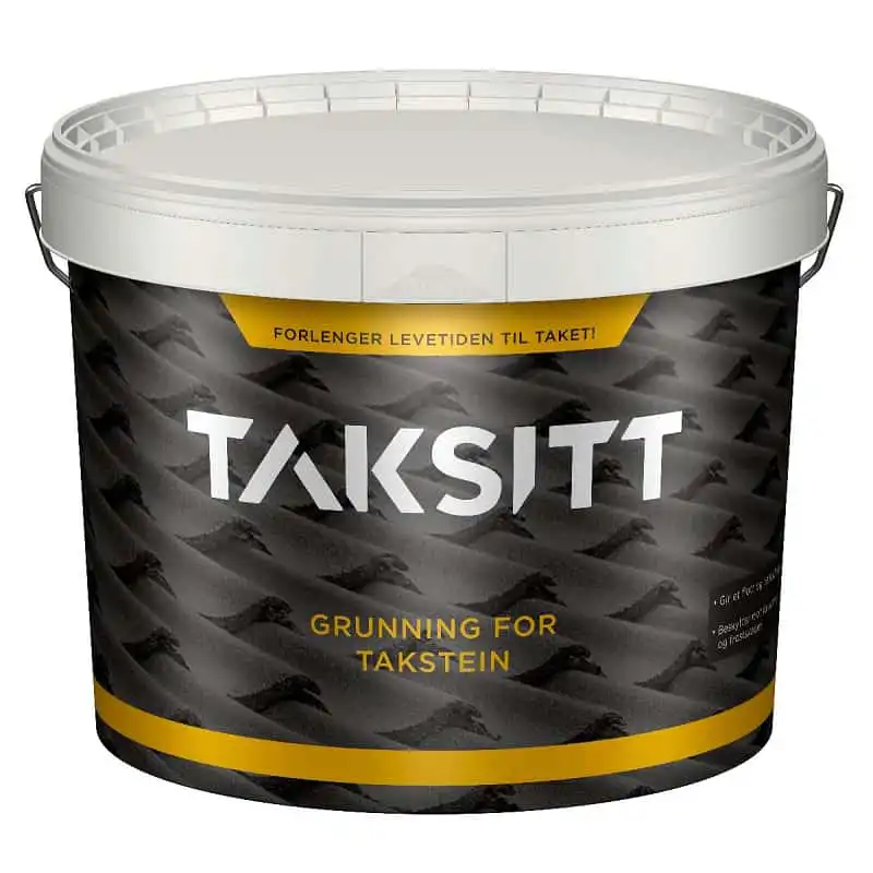 TakSitt grunning for Takstein og eternitt er en vanntynnbar, klar grunning spesialutviklet for takstein. Den beskytter mot begroing og forvitring. Grunningen gir god inntrengning og gir god heft til TakSitt Spesialmaling for takstein.