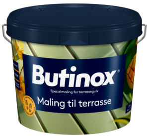 Butinox Maling til Terrasse er en robust og vanntynnet terrassemaling basert på akryl, spesielt utviklet for impregnert treverk. Perfekt for deg som vil gi terrassegulvet et matt og moderne utseende – og samtidig være trygg på at det tåler både sommerselskaper, barneføtter og grillsesongen.