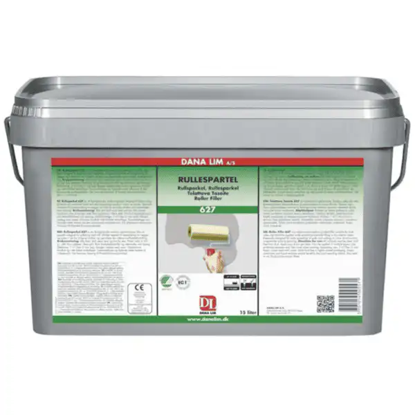 Dana Lim Rullesparkel 627 i 15 liters bøtte er en ferdigblandet, medium lettsparkelmasse som er spesielt utviklet for rullepåført helsparkling og sparkling av gipsplateskjøter innendørs i tørre rom.