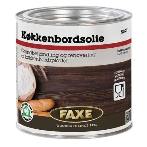 Faxe Kjøkkenbenk olje er en spesiell olje beregnet for å behandle og beskytte trebenkeplater på kjøkkenet. Kjøkkenbenk olje kan brukes på ubehandlet tre, lutbehandlet tre eller tidligere oljet treverk.