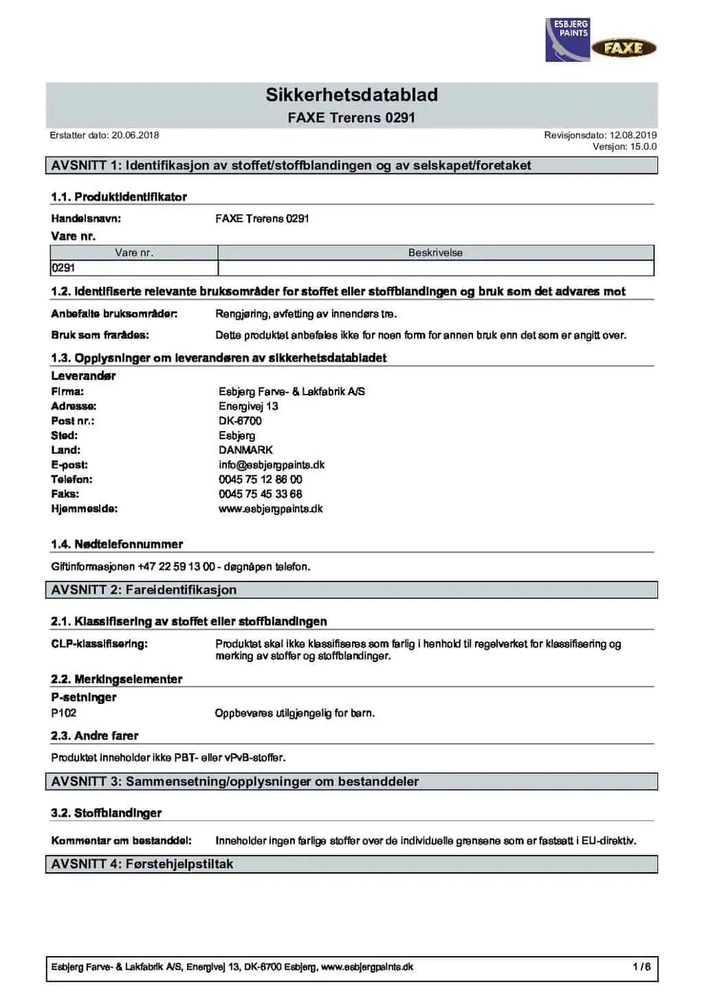 FAXE Trerens er et effektivt, vannbasert rengjøringsmiddel spesielt utviklet for grunnrengjøring av innendørs tømmeroverflater som gulv, tak, veggpaneler og møbler. Produktet brukes primært til dyprens og avfetting i forbindelse med etterbehandling av tre. Den fjerner skitt, smuss, fett, nikotin og gammel såpefilm i dybden, og åpner samtidig porene i treet slik at den etterfølgende behandlingen (som olje eller såpe) fester bedre.