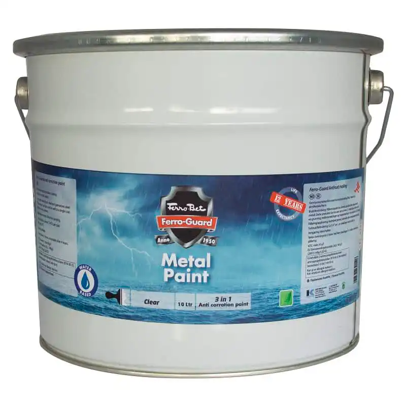 Ferro-Guard Proff metallmaling 9 liter er et helt nyutviklet, vannbasert og miljøvennlig 1-komponent metallmaling som er utviklet for barske industrielle og marine miljøer (C4 og C5) og holder opp til 15 år (C4).