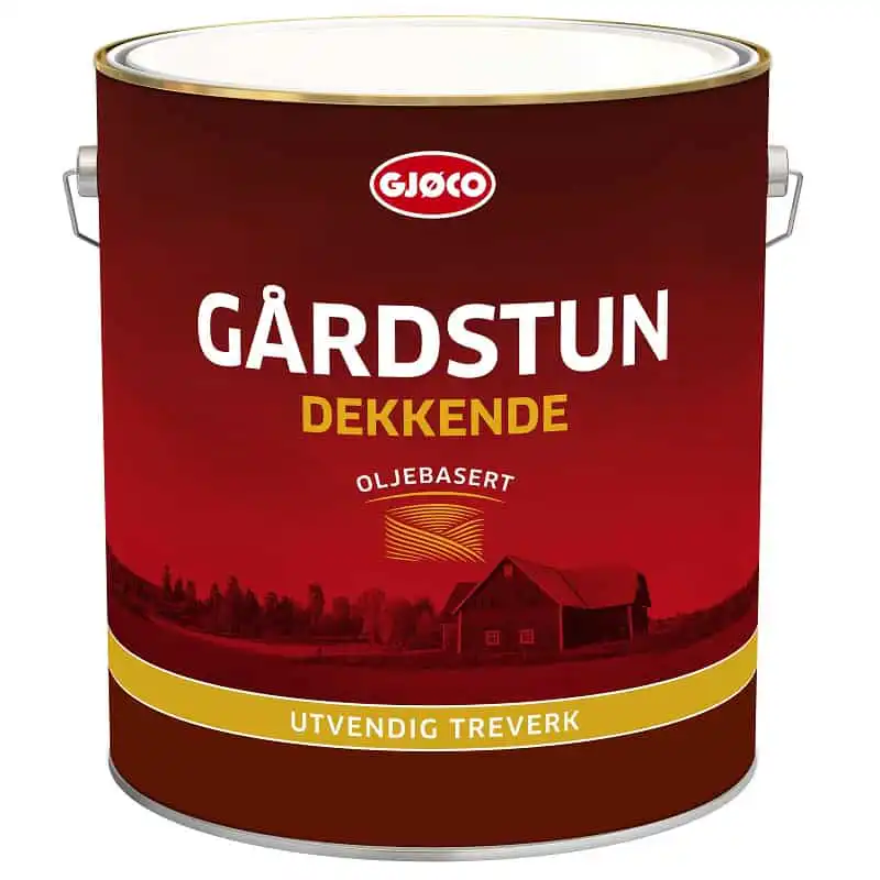 Gjøco Gårdstun Rød Låvemaling er en værbestandig oljedekkbeis spesielt egnet for driftsbygninger. Meget velegnet for sprøyting og kan påføres i minusgrader. Gårdstun låvemaling inneholder filmkonserverende middel og sopphindrende middel. Leveres kun i ferdigblandede farge som kalles Gjøcorød, dette er oksydrød base. Dette skal tilsvare ca Jotun 25 rørosrød.