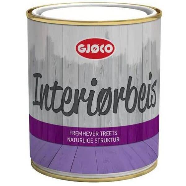 Gjøco Interiørbeis er en vanntynnet oljebeis til innvendig bruk på ubehandlet bart treverk som panel, dører, listverk og møbler. Gir treverket en naturlig matt overflate som fremhever trestrukturen. Pigmentene i beisen vil også motvirke gulning av treverket. Beisede flater som er utsatt for mye slitasje bør etterbehandles med Gulvlakk.
