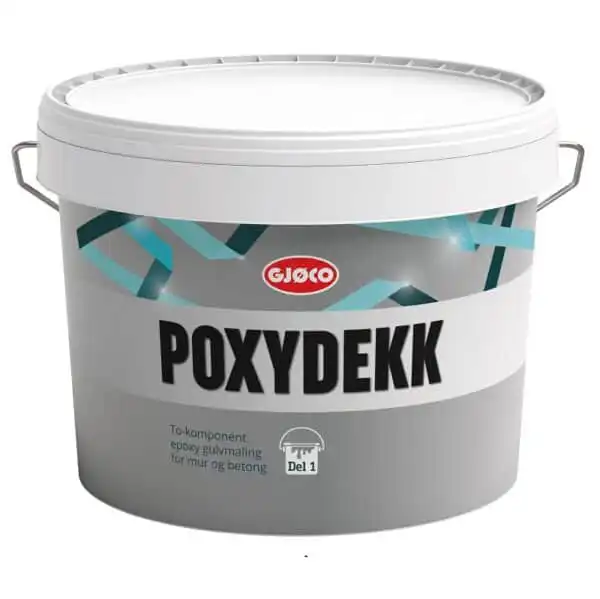 Gjøco Poxydekk er en luktsvak, vanntynnbar 2-komponent epoxymaling med høy glans og stor slitestyrke, god vannfasthet og vedheft. Malingen danner en vannfast og slitesterk film som står godt mot de fleste kjemikalier og løsemidler. Bestandigheten mot syrer er noe begrenset.
