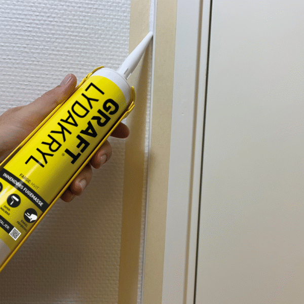 Lydakrylen er ideell for tetting av sprekker og skjøter der man ønsker å hindre lydlekkasje: