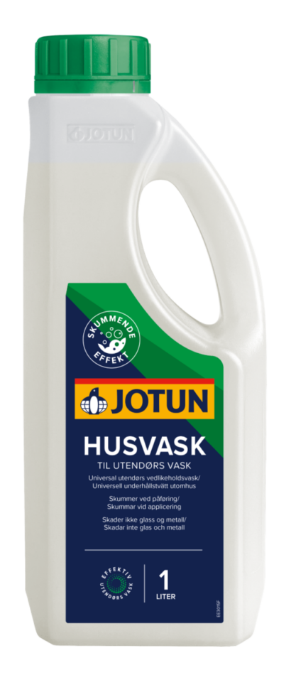 JOTUN Husvask er den perfekte løsningen for den årlige vedlikeholdsvasken av fasade, terrasse og hagemøbler. Med sin kraftige og sterkt skummende formel, fjerner den effektivt smuss, alger og forurensning – samtidig som den ikke skader glass eller metall.