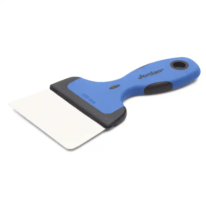 Jordan japansparkel med grep 100 mm, egner seg ypperlig til mindre og mellomstore sparkelarbeider på møbler, dør/karm/list, og til karosserisparkling og båt.