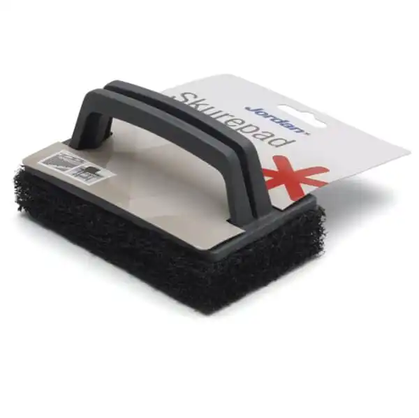 Jordan SkurePad har en ekstra tykk og slitesterk skureflate og et komfortabelt håndtak. Dette sikrer jevnt trykk på skrubben ved bruk og at den ligger godt i hånden mens du skrubber.