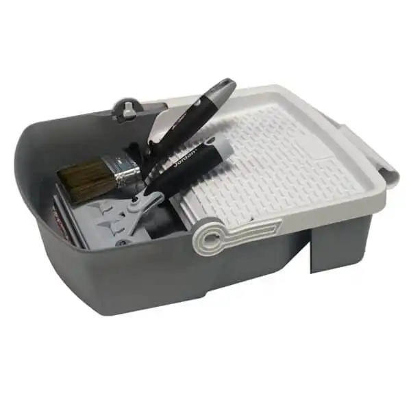 Jordan superbrett er et superpraktisk maleverktøy som har stabiliteten til malerullkar og litt av kapasiteten til malerbøtte så du slipper å fylle på så ofte. Det er også en lengre og spesialutviklet rulleflate, som gjør at du får bedre opptak av maling i malerullen. Den passer til alle maleruller opp til 25 cm bredde.