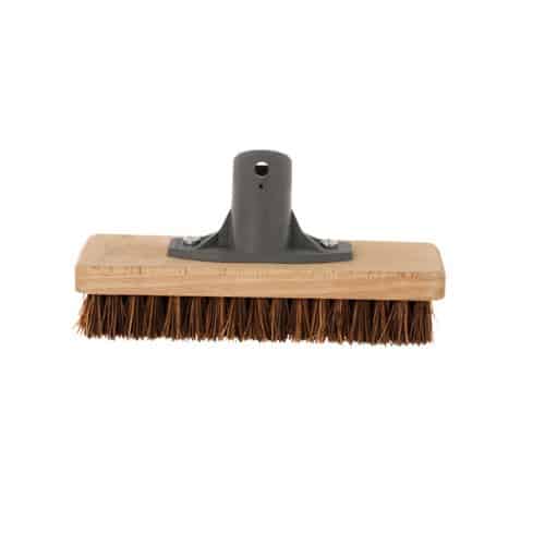 Størrelsen på terrasseskrubben er 19 cm og passer i en vaskebøtte. Kostehodet er i tre og har en kraftig god bust, slik at den tåler å jobbes mye med.