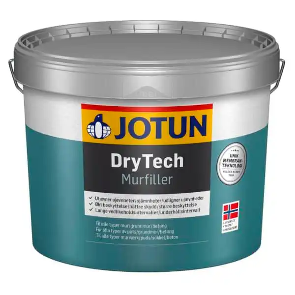 - DryTech Murfiller skal alltid overmales med JOTUN DryTech Murmaling eller annen egnet Murmaling.