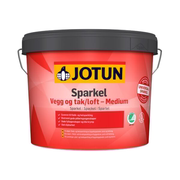 Jotun Sparkel Vegg & Tak Medium er en lettsparkel som er designet for å utjevne flater på vegger og tak.