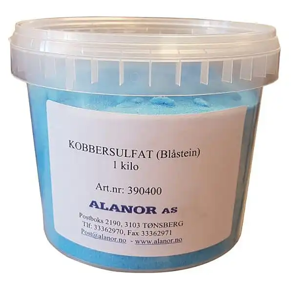 Kobbersulfat Blåstein, er et blått pulver som har vide bruksområder. Kobbersulfat Blåstein kan brukes til å lage grønne flammer, behandle betennelser og sur stråle i hover (kan blandes i sinksalve), bekjempe sopp på planter, farging av silke, ull og bomull, forkromming av metall, som et alternativ til Jernvitrol for å behandle kledning på hus og hytte, gir en mer gylden farge enn Jernvitrol som blir grå osv. osv.