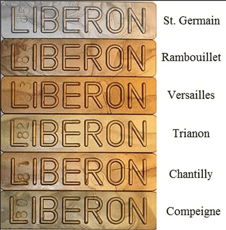 Liberon Reparasjonsvoks finnes i mange fargevarianter, forskjellige nyanser i trefarger pluss sort, hvitt, gull og sølv. Alle fargene kan blandes med hverandre ved å kna de varme og jobbe de sammen.