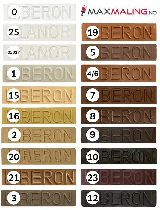 Her er listen over fargene som kan leveres i Norge: Gå til Liberon reparasjonsvoks Sett 16 stk om du ønsker sett med alle farger som du ser under at dette inneholder.