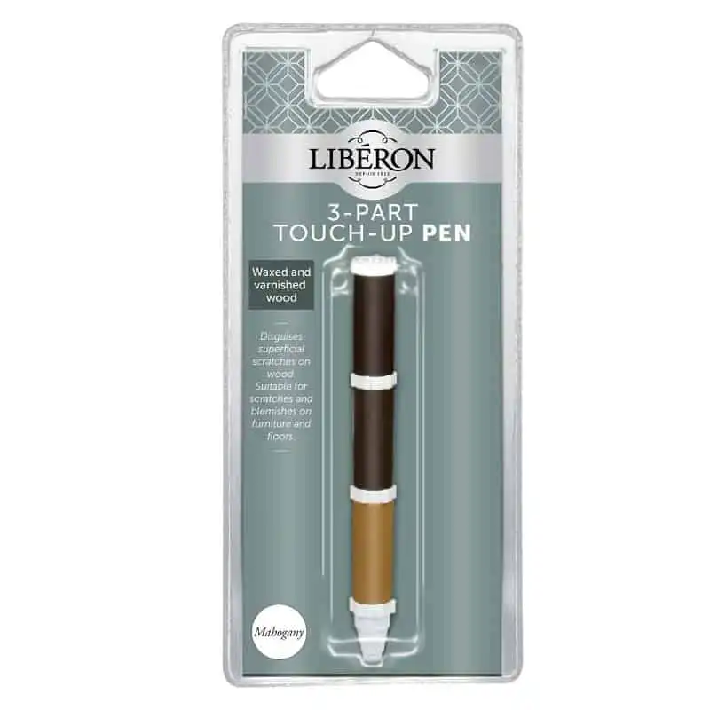 Liberon Retusjeringsfiltpenn er en spritbeispenn som finnes i mange fargenyanser. Pennen farger riper og skaden slik at de blir mindre synlig.