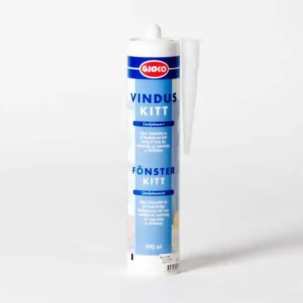 - Skal du legge i glass på nytt, oppleves linoljekitt Gjøco vinduskitt som god å bruke. Den er litt tynnet ut for å kunne brukes i patron, så det er lett å legge glasset i massen og trykke den på plass.