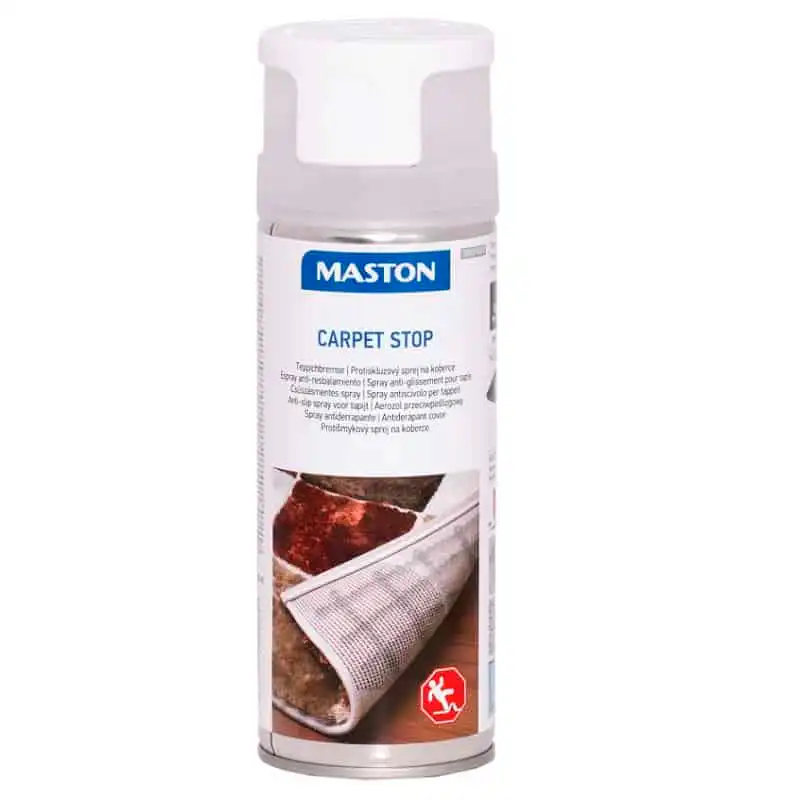 Maston Carpet Stop antiskli spray er enkel å bruke, skader ikke gulvet og holder tepper på plass på gulvet. Passer til tepper som skal ligge på harde gulv, som tregulv, laminat, flis, oljet/lakkert gulv, betong, plast etc.