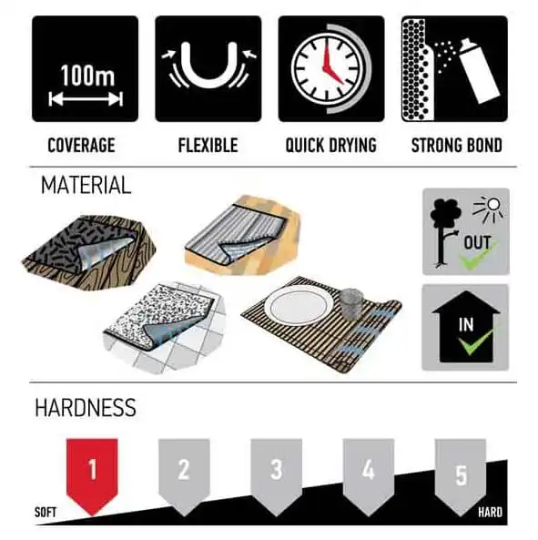 Maston Carpet Stop antiskli spray forhindrer at tepper, ryer, matter, duker, løpere og tekstiler beveger seg, sklir og glir. Også ypperlig til underlag til kontorstol. Det er litt hvit farge i Carpet stop, så om du har gjennomsiktig gulvbeskyttelse under kontorstolen, vil du se stripene etterpå, men gulvbeskyttelsen ligger stille.
