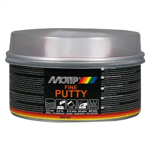 Motip Finsparkel er lett å bearbeide og gir en slett finish, minimalt med porer. Ypperlig til små uregelmessigheter i overflater av stål, aluminium, tre, betong og polyester.