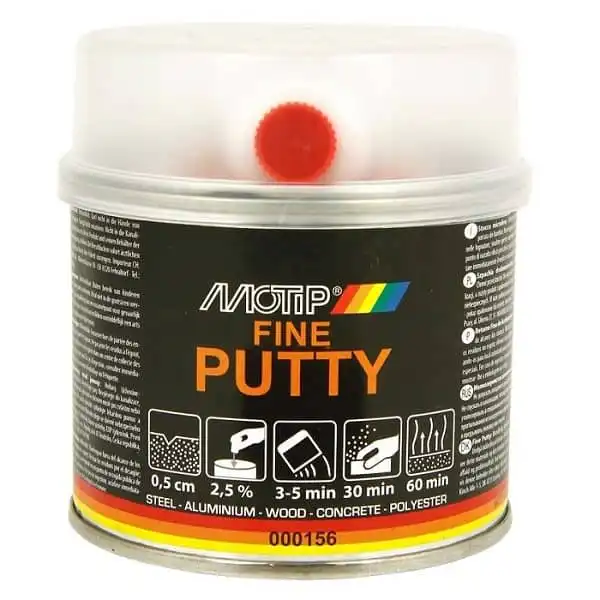 Motip Finsparkel er lett å bearbeide og gir en slett finish, minimalt med porer. Ypperlig til små uregelmessigheter i overflater av stål, aluminium, tre, betong og polyester.