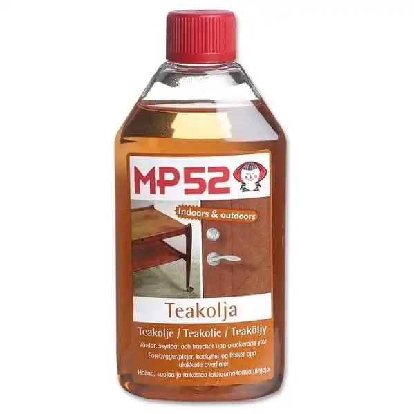 MP52 Teakolje passer utmerket til f.eks. dører, inredningsdetaljer, båtinredning, hagemøbler i tre og til uttørkede overflater som trenger oppfriskning og beskyttelse.
