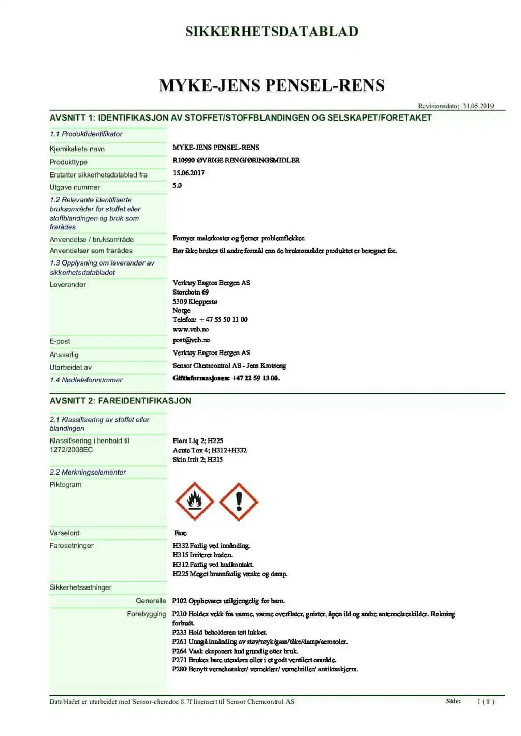 Myke Jens Penselrens fjerner effektivt flekker av lim, maling, tagging, byggskum, mv. Den er også meget effektiv til rensing og avfetting av maskiner og verktøy. Bruk den gjerne til fjerning av vanskelige flekker på klær og møbler, f.eks grønske. NB! prøv først på ett lite synlig område ved flekkfjerning. Bruk en fille dyppet i Myke Jens når du skal fjerne flekker og gni forsiktig på flekken. MykeJens bør ikke brukes på plast, PVC, plexiglass eller lakkerte flater.