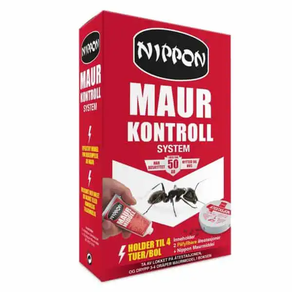 Nippon maurkontrollsystem er et produkt for å bekjempe maur, spesielt sort jordmaur (sukkermaur), som ofte brukes innendørs men også kan brukes ute. Inneholder 1 tube med maurmiddel og 2 påfyllbare metallbokser med lokk. Boksene etterfylles ved behov. Utrydder maur uten søl eller spor.