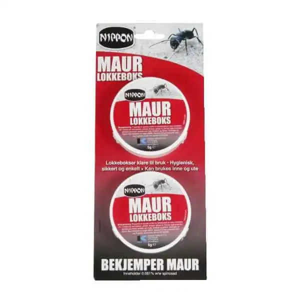 Hygienisk, sikkert og enkelt. Nippon Maurlokkeboks inneholder stoffer som får mauren til å ta med seg åten tilbake til tuen. Allerede etter noen få dager vil maurene være borte, etter ca 3 uker er hele tuen borte. Det er viktig at annen maurmat fjernes, ellers vil ikke maurproblemet bli borte. Det er flere alternativer som kun dreper de maurene som er i kontakt med middelet, f.eks potetmel og Myrnix, men Nippon Maurmiddel virker slik at maurene tar med seg giften til tuen, slik at en blir kvitt hele kolonien hvis en holder på over litt tid.