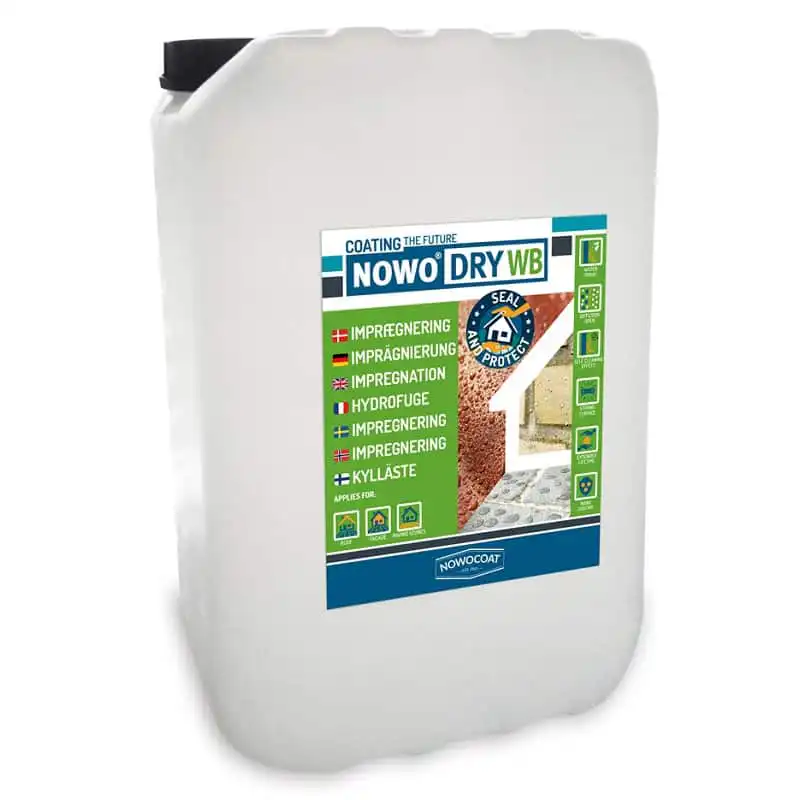 Nowodry WB er en vannbasert impregnering som gir en fargeløs film av Siloksan og nanoteknologiske virkestoffer. Trenger dypt inn i og binder seg aktivt til overflaten. Hindrer effektivt fuktighet og vanninntrengning i den behandlede overflaten. Beskytter overflaten mot nedbrytning og frostsprengninger, samt forlenger overflatens levetid med mange år.