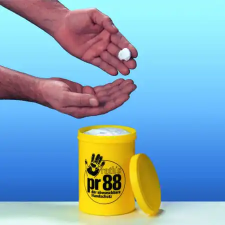 PR 88 Usynlig hanske på boks er en vannløselig barrierekrem som har vært på markedet i 50 år. PR88 beskytter huden mot maling, oljer, fett, harpiks, lim, sot, tjære, polyester løsemidler og andre skadelige og irriterende stoffer.