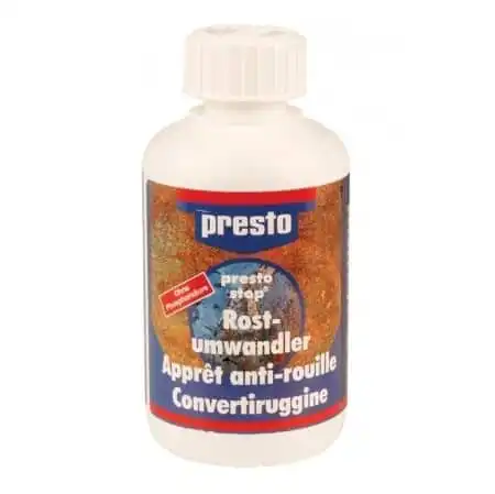 Presto Stop er basert på epoxyharpiks, som sammen med det nøytraliserte rustlaget danner en metallorganisk stålhard hinne, som igjen danner grunnlaget for en langvarig og effektiv lakkbeskyttelse.