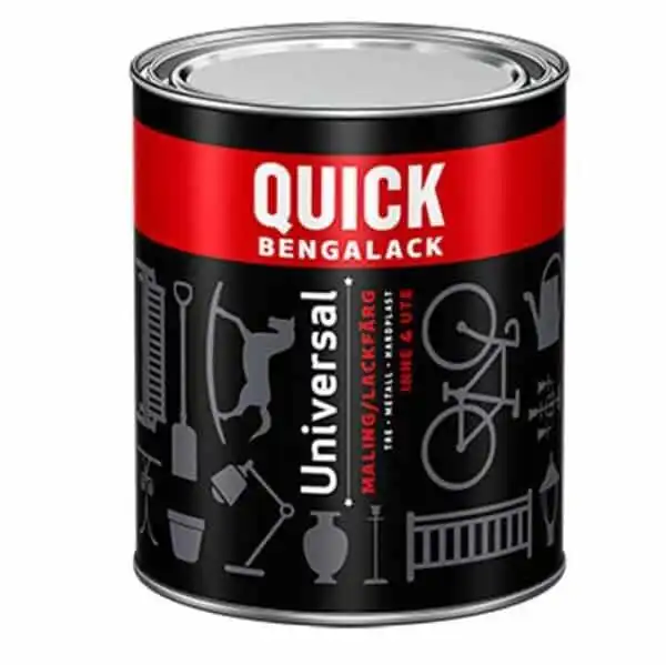 Quick Bengalack Universal gir en blank flott overflate og kan brukes på så og si alt. Den er utviklet til å gi en sterk og slitesterk overflate som er værbestandig og har god vann- og kjemikaliebestandighet.