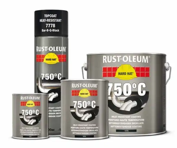 Rust-Oleum Varmebestandig lakk/maling tåler opp til 750 °C varme. For bruk på metall. Beregnet for bruk på rent stål, sandblåst stål, lett rustet stål og malte overflater som er grundig klargjort, f.eks griller, peisutstyr, varmeovner etc.