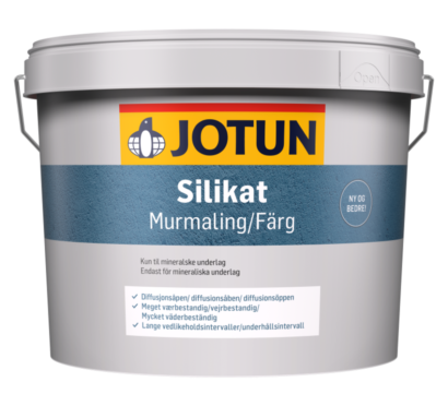 JOTUN Silikat Murmaling er en spesialmaling utviklet for fasader og flater med kalkrik puss. Malingen er svært diffusjonsåpen, noe som gir bygningen optimal pusteevne, og den er ekstremt værbestandig – perfekt for norske forhold.
