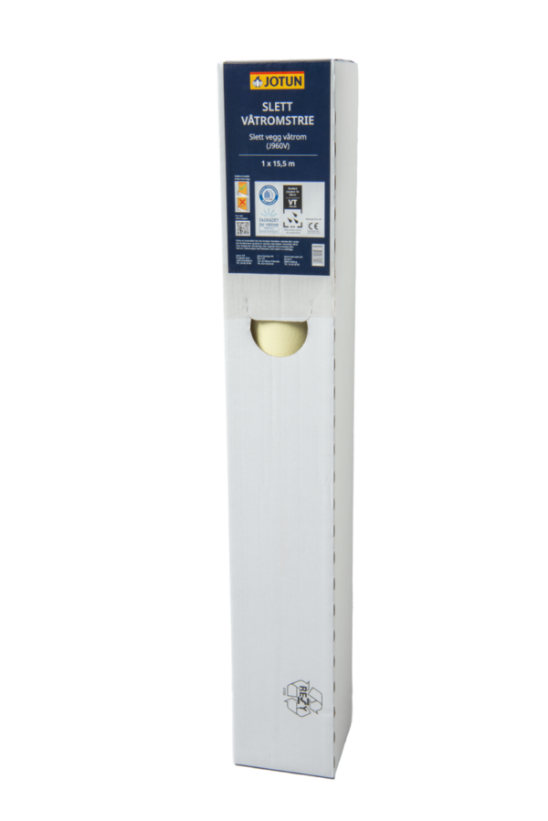 JOTUN Slett Vegg for Våtrom, J960V, er en tapet som inngår i Jotuns våtromssystem. Produktet gir en vakker slett overflate og er overmalbar. Produktet har gode armerende egenskaper, og er enkel å montere. JOTUN Slett Vegg for Våtrom er kun godkjent i system med LADY Aqua Matt.