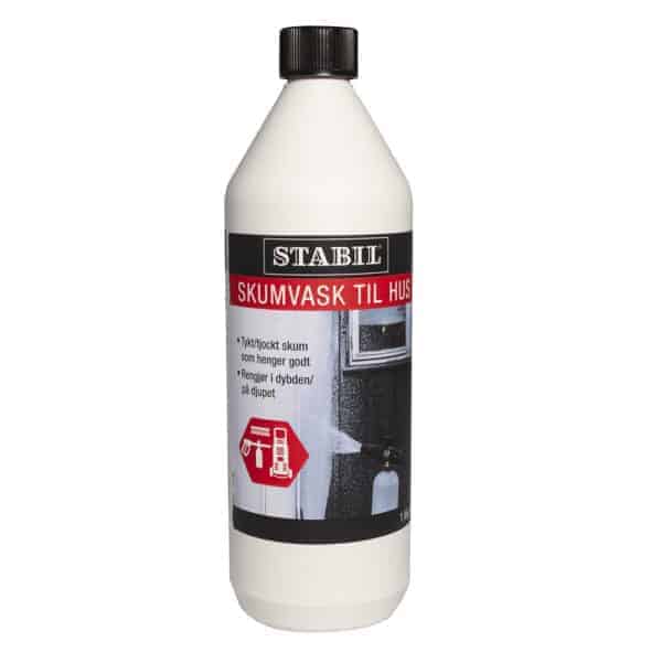Stabil Skumvask er et biologisk nedbrytbart rengjøringsmiddel som påføres med høytrykkvasker og skumkanon. Det er enkelt å se hvor du har lagt på såpe og såpen TØRKER IKKE ut, før du har fått gått over med kosten og er klar til å skylle.