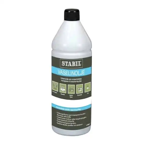 Stabil Vaselinolje har ett ufattelig stort bruksområde. Vaselinolje brukes til beskyttelse og impregnering av kjøkkenbenker, møbler av tre og plast, til vinteropplag av glassfiberbåter, griller som skal lagres, vedlikehold av keramiske fliser, tegl og klinker, og til smøring av sykler, hengelåser, symaskiner og husholdningsmaskiner.