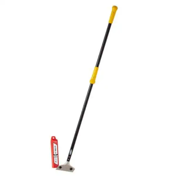 Tapetskrape – Gulvskrape Tajima Tapet stripper 1200mm med 3 blad. Er en meget kraftig og brukervennlig to-håndskrape, som virkelig gjør at du får jobben gjort. Egent til fjerning av tapet, gulvbelegg eller tepper. Det følger med 3 stk 25mm Rock hard Solid blade LCB-65S fra Tajima. Det kan også brukes vanlig 25mm bryteblad, men de vil jo da bli litt fortere slitt.