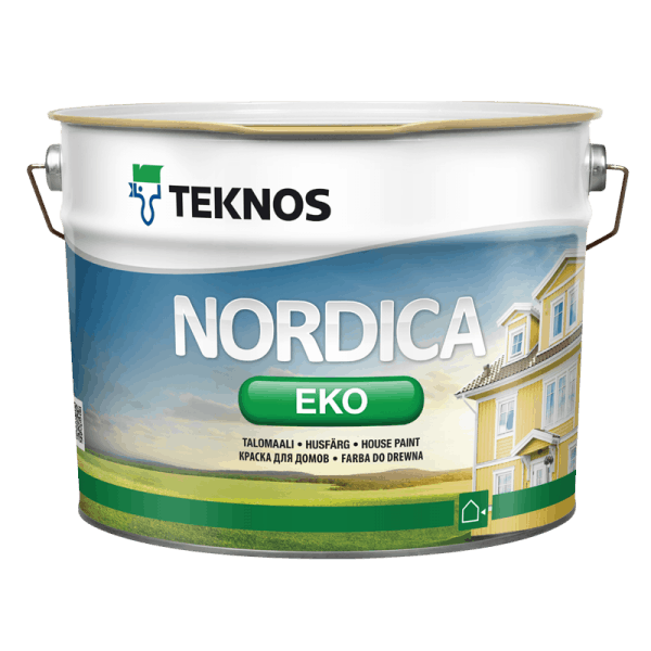 Nordica EKO vant siste Folksamtesten i Sverige, og ble kåret til beste fasademaling. Dette er en ren dobbeltvirkende akrylmaling som holder godt på farge og er sterk mot svertesopp. Akrylmalinger er også veldig gode å bruke, lett å dra utover og drypper lite. Nordica EKO har en blank og hard overflate som er smussavvisende og er samtidig diffusjonsåpen.
