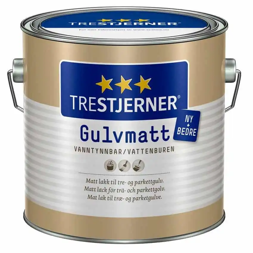 TreStjerner Gulvmatt fra Scanox er Trestjerner sin beste gulvlakk noensinne. Har oljens utseende og lakkens slitestyrke. Gir ingen synlig lakkfilm. Produktet gir et