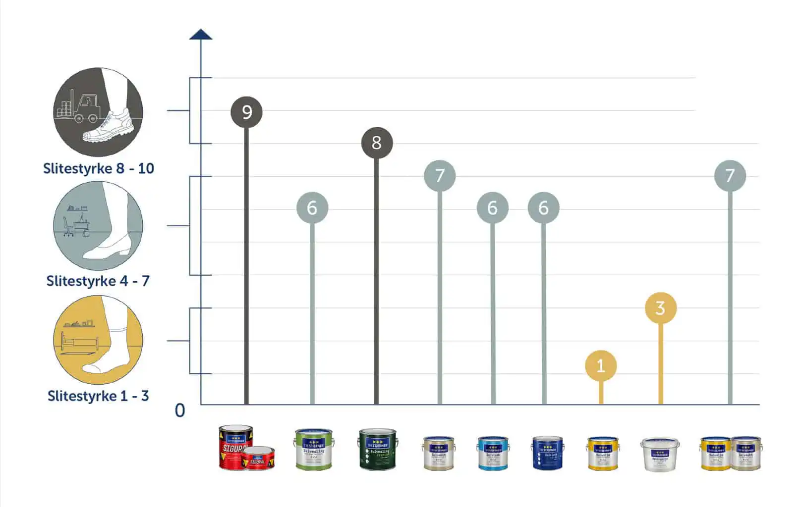 TreStjerner Gulvmatt har god slitestyrke, gir god vann- og kjemikaliebestandighet, gulner ikke og har svak lukt.